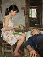 洗干凈油彩,準備,從拿束茶,遞到面。